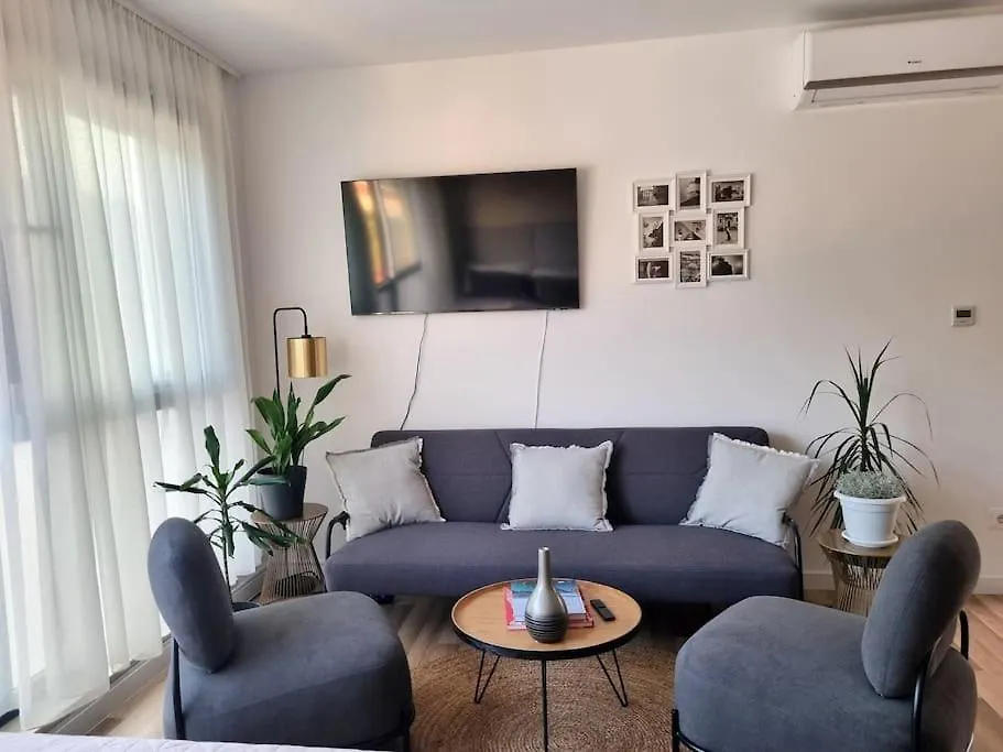 The 37 m² apartment is just off Cajkovici 2 bus stop.